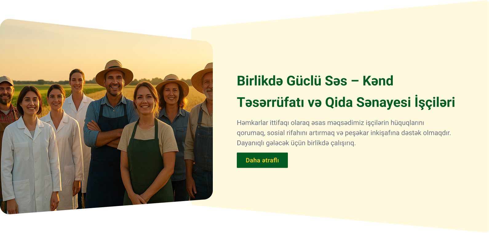 Qida istehsalı sahəsində çalışanların hüquqlarını qoruyur, iş şəraitinin yaxşılaşdırılmasına töh...